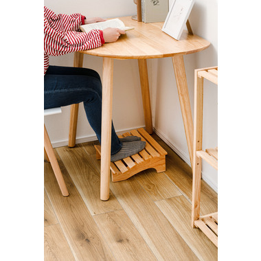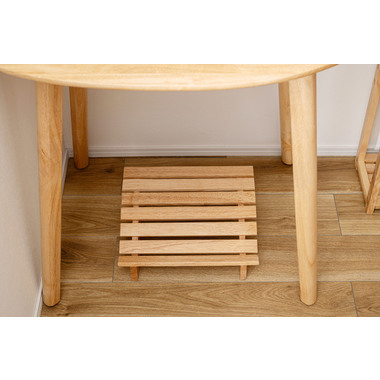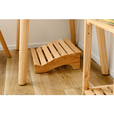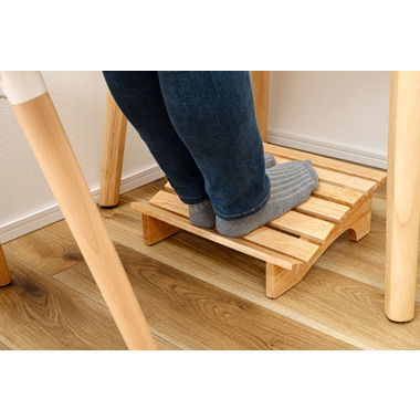 ●天然木(ラバーウッド)を使用したフットレスト(足置き)。●かかとがフィットするように設計されているので、足の位置を高くして足首を自然な角度にすることで、疲れにくくなると言われています。●「デスクワーク」「リモートワーク」などの長時間の使用におすすめ。●足の位置を高くして、足首が自然な角度になる事で、長時間座っても疲れにくくなります。●天然木を使用しているので、素足で使っても気持ちよく使えます。●完成品なので面倒な組立作業がなく、届いてすぐに使えます。●天然木のあたたかみと優しさを感じられるラバーウッドを使用。●脚裏にはゴム製の滑り止め付き。