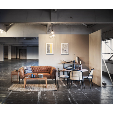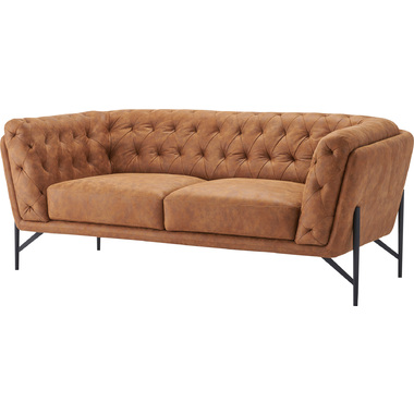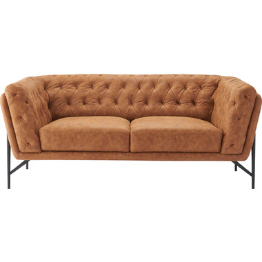 クロスステッチが施されたレザー調の張地は、アンティークな風合いでお部屋の顔になるような抜群の存在感です。