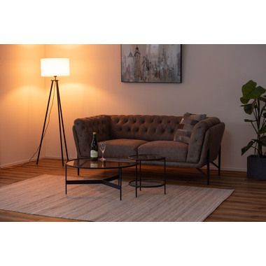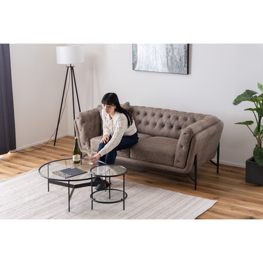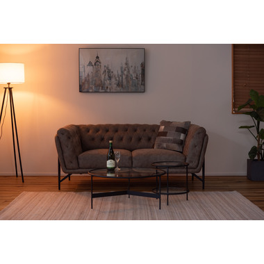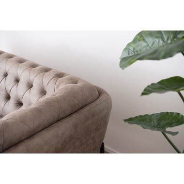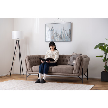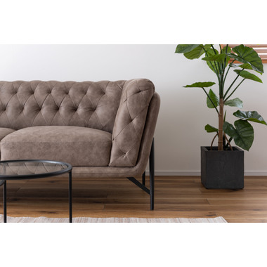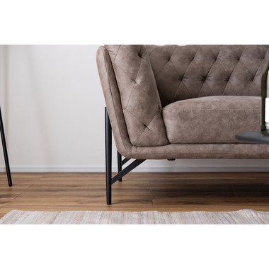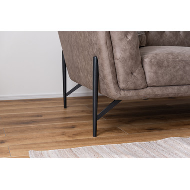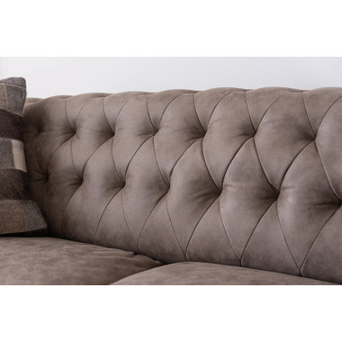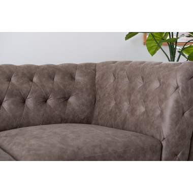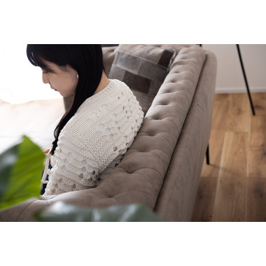 クロスステッチが施されたレザー調の張地は、アンティークな風合いでお部屋の顔になるような抜群の存在感です。