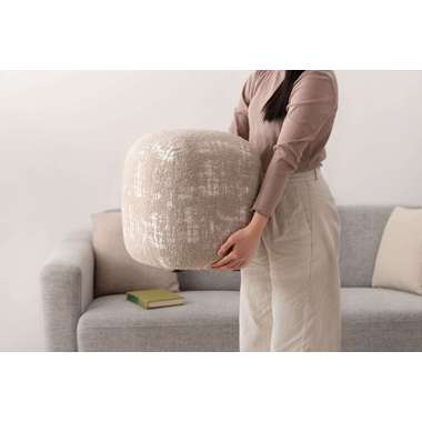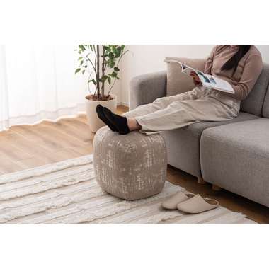 風合いのある質感と落ち着いた佇まいが魅力的なスツール。表情豊かであたたかみのあるファブリックは、空間の程よいアクセントに。ほどよい弾力が心地よく、柔軟な座り心地を実現。軽やかなサイズ感で気軽に持ち運ぶことができ、リビングやドレッサー周りなど幅広いシーンで活躍します。