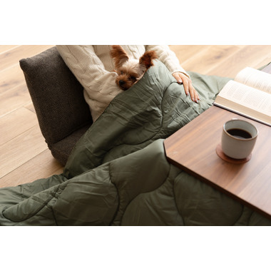 撥水加工を施したコタツ布団は、飲み物をこぼした時など汚れを弾くのでお手入れカンタン。
