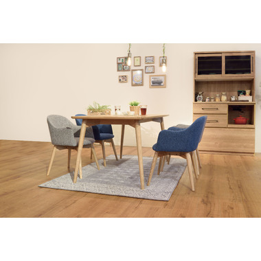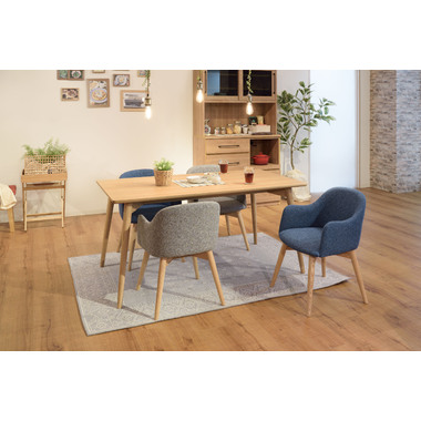 背もたれとアームが一体になった身体をしっかり支えるダイニングチェア。