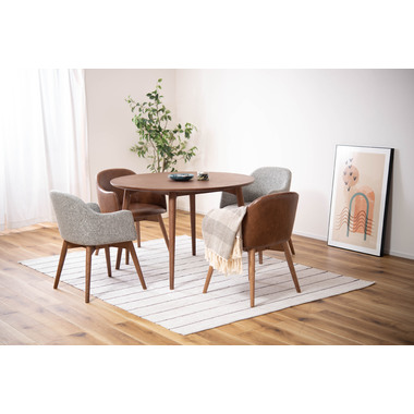 ●人気のカラメリシリーズに、落ち着いた色味のブラウンのテーブルが登場。●ナチュラル同様に丸みのあるデザインを取り入れ、永く親しみやすいように仕上げました。●セットにおすすめのチェアは、同シリーズのダイニングチェア。●脚部分がブラウンなのでテーブルとの色味もばっちりです。●より一層シックで落ち着いた雰囲気の食卓を演出します。