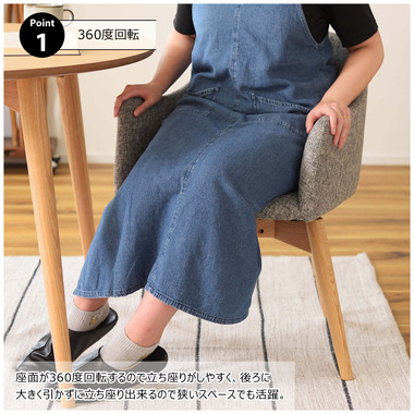 ●座面が360度回転するので、立ち座りしやすいチェア。