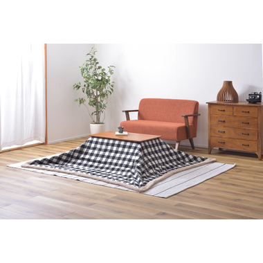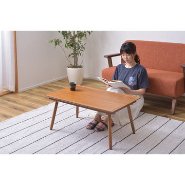 一人使いにちょうど良いコンパクトなコタツテーブル。天然木の風合いや天板のラインなどシンプルでシャープな印象のテーブルです。