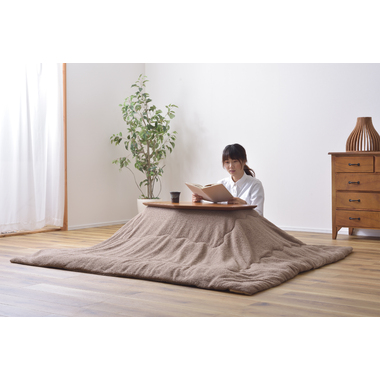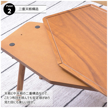 一人使いにちょうど良いコンパクトなコタツテーブル。天然木の風合いや天板のラインなどシンプルでシャープな印象のテーブルです。