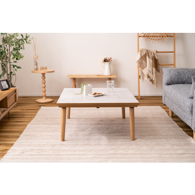 ●大理石調のストーン柄の天板とナチュラルな木目の組み合わせたフラットヒーターコタツ。●すっきりとしたデザインとこだわりの機能を兼ね備えた自慢のこたつ。●従来の石英管ヒーターに比べ、薄型のフラットヒーターは内部を広々と使え、のびのびくつろぐことが出来ます。●ヒーター面積が広いので温度のムラがなく、均一に暖めることができるフラットヒーター。隅々まで均一な暖かさをつくってくれます。●天板の形や脚はシンプルさにこだわり、テーブルとしてインテリアになじむようデザイン。●圧迫感のない、広々と使いやすいサイズ感のセンターテーブルとしてオールシーズン活躍。