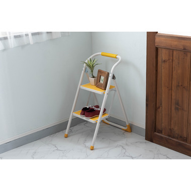 ●踏み台としてだけではなく様々な使い方ができる便利なステップ台。●ポップな3色がお部屋にアクセントを与えてくれます。●踏み台が2段付いたステップ台なので、高い場所での作業もラクラク。●フレーム上段のグリップ部分は握りやすい仕様になっているので、昇り降りも安心して行なえます。●ステップ部分は滑りにくいノンスリップ仕様。●ステップの裏面には安全ストッパー付き。●折りたたみ式なので持ち運びも簡単。●ちょっとした隙間や車の荷台など、省スペース収納が可能です。