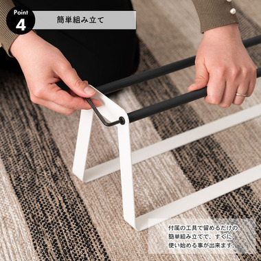 ●置き場所を選ばない、コンパクトなスリッパラック。●コンパクトなサイズ感で、置き場所に困らないスリッパラック。●軽量なので移動も楽に行えます。●お部屋や玄関など、どこに置いても圧迫感を与えず馴染んでくれるデザイン。●幅46cm、奥行15.5cmのコンパクトサイズで、狭い玄関にもスッキリ置く事が出来ます。●軽量設計なので置き場所を変えたり、掃除の際に動かしたりするのも楽に出来ます。●雑誌などを入れて、マガジンラックとして使うのもオススメ。●付属の工具で留めるだけの簡単組み立てで、すぐに使い始める事が出来ます。