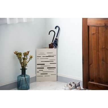 立体的なカットが印象的なスチール製の傘立て。無駄のないフォルムにスタイリッシュなスリットが入っているため、空間に軽やかな抜け感を演出します。様々な玄関と相性の良い、落ち着いたカラーリングと光沢を抑えたマットな質感が、上品でモダンな印象を与えてくれます。玄関の角にすっきり収まる三角形フォルムで、省スペースながら実用性を兼ね備えたアイテムです。