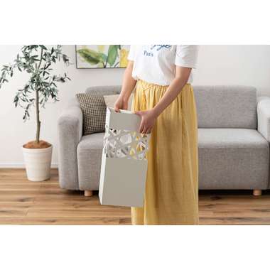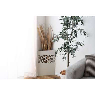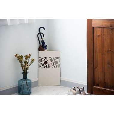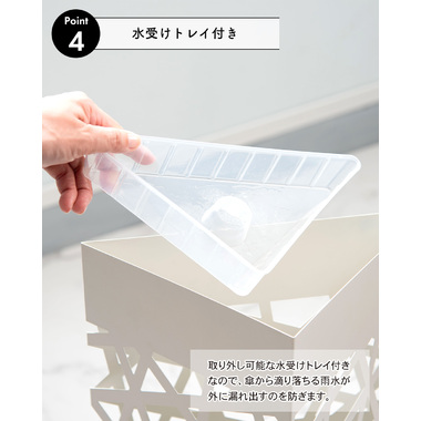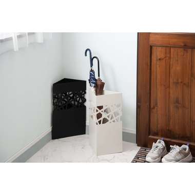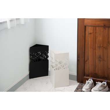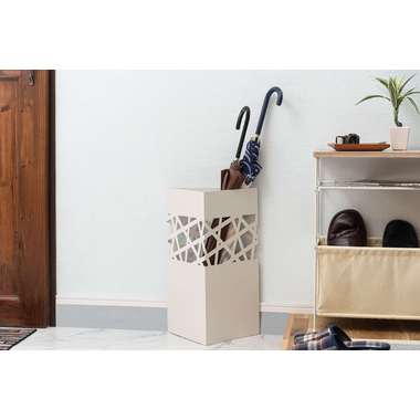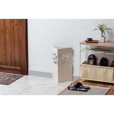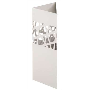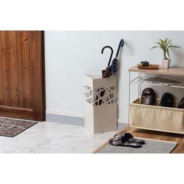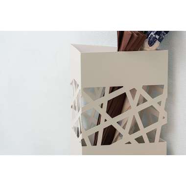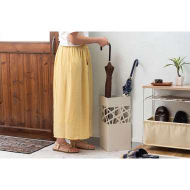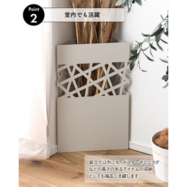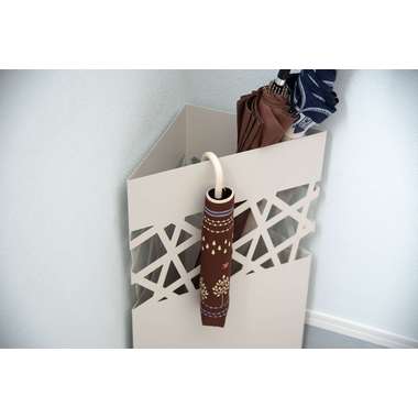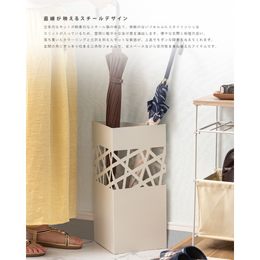 立体的なカットが印象的なスチール製の傘立て。無駄のないフォルムにスタイリッシュなスリットが入っているため、空間に軽やかな抜け感を演出します。様々な玄関と相性の良い、落ち着いたカラーリングと光沢を抑えたマットな質感が、上品でモダンな印象を与えてくれます。玄関の角にすっきり収まる三角形フォルムで、省スペースながら実用性を兼ね備えたアイテムです。