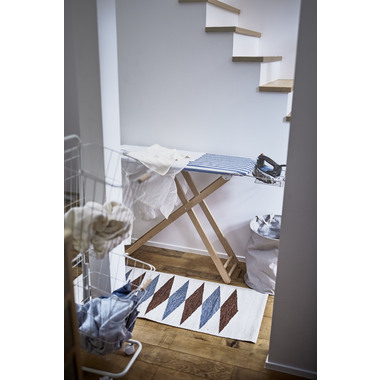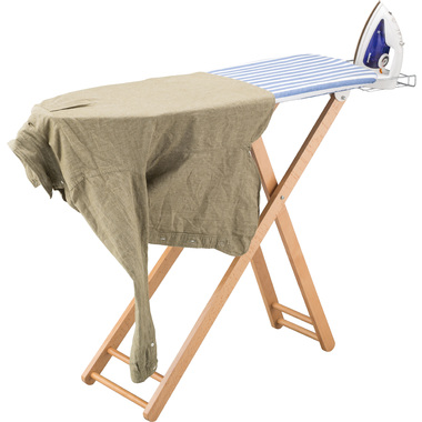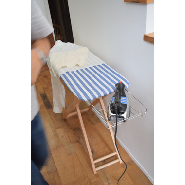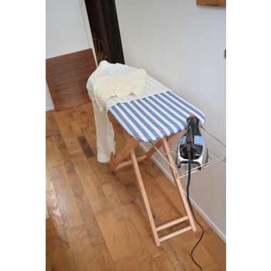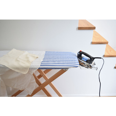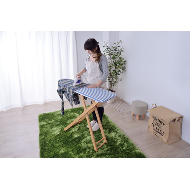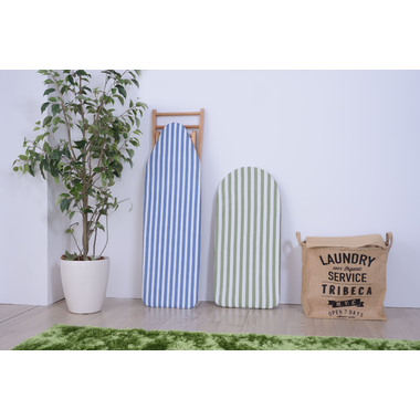 爽やかなストライプ柄と木製の脚を採用したアイロン台。女性に人気のナチュラルテイストに仕上げました。