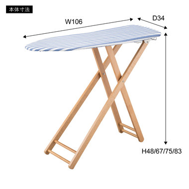 爽やかなストライプ柄と木製の脚を採用したアイロン台。女性に人気のナチュラルテイストに仕上げました。