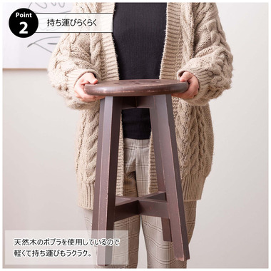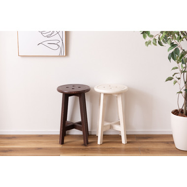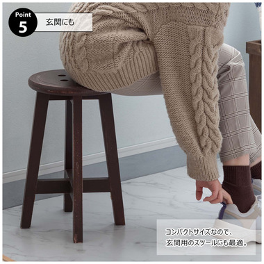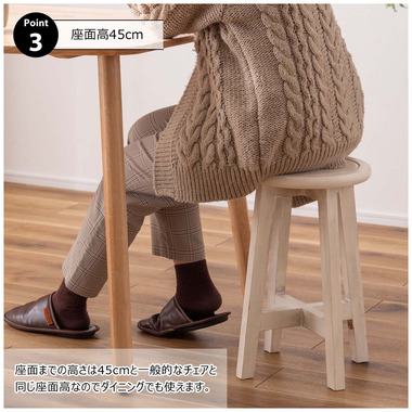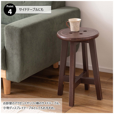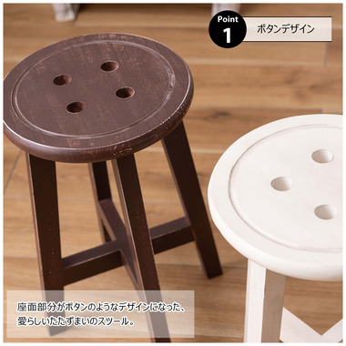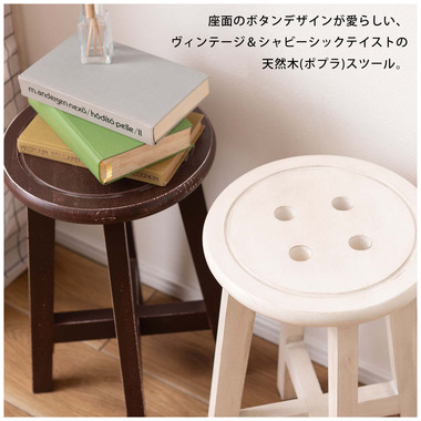 ●座面のボタンデザインが愛らしい、ヴィンテージ&シャビーシックテイストのスツール。●天然木のポプラを使用しているので軽くて持ち運びもラクラク。●座面までの高さは45cmと一般的なチェアと同じ座面高なのでダイニングでも使えます。●普段使いや来客用としてのスツールはもちろん、お部屋のアクセントやソファ横のサイドテーブル、小物ディスプレイテーブルとしてもおすすめ。●コンパクトサイズなので、玄関用のスツールにも最適。