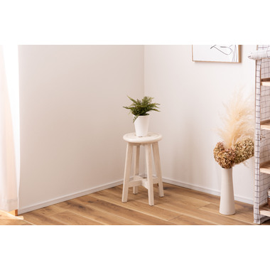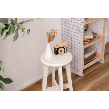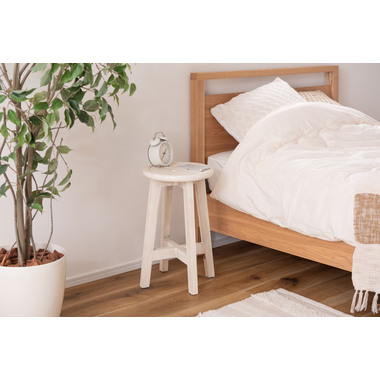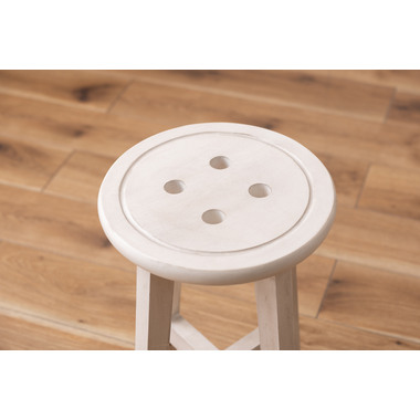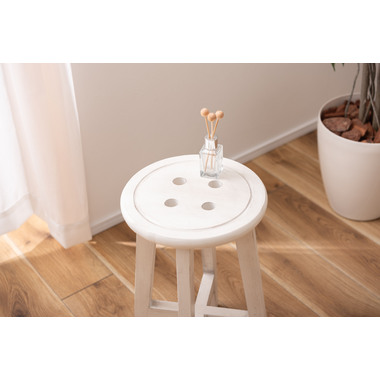 ●座面のボタンデザインが愛らしい、ヴィンテージ&シャビーシックテイストのスツール。●天然木のポプラを使用しているので軽くて持ち運びもラクラク。●座面までの高さは45cmと一般的なチェアと同じ座面高なのでダイニングでも使えます。●普段使いや来客用としてのスツールはもちろん、お部屋のアクセントやソファ横のサイドテーブル、小物ディスプレイテーブルとしてもおすすめ。●コンパクトサイズなので、玄関用のスツールにも最適。