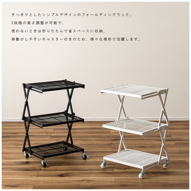 ●すっきりとしたシンプルデザインのフォールディングラック。