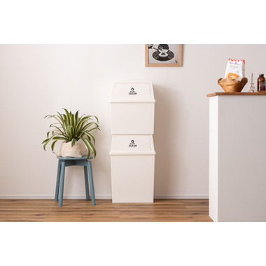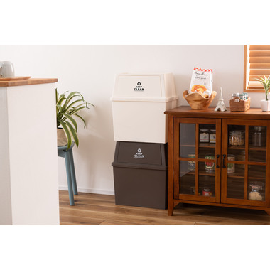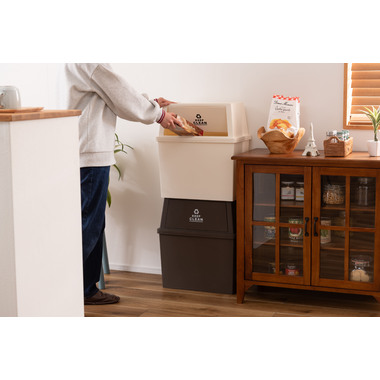 ●横幅ワイドで奥行スリム、大容量でもスペースを取らないスタッキングペール。●キッチン回り以外にリビングやデスク回りなど壁面に沿って設置できるので、無駄なくきれいにスペースを使う事ができます。 ●積み重ね(スタッキング)ができるのでゴミの分別にも便利。●蓋の内側にはバネが付いているので、ゴミを捨てた後は自然に蓋が閉まる仕様。●また蓋の裏側にストッパーが付いているので、蓋を上に押し上げて固定させておく事もできます。●底面にはミニキャスター付きで移動もらくらく。キャスターは縦方向用・横方向用どちらにも取り付け可能。●本体内側には可動式の袋止め付き。ゴミ袋の脱着をする際、綺麗に簡単に脱着できます。●ポリプロピレン製なのでお手入れが簡単でいつでも清潔。●安心の日本製。