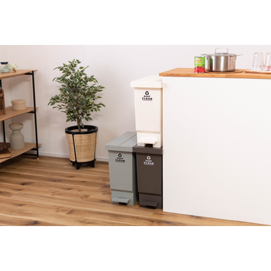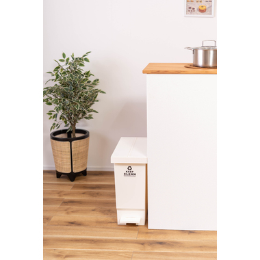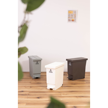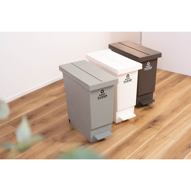 ●コンパクトな設計で使いやすいシンプルデザインのペダルペール。●バタフライタイプなので省スペースで開閉ができ、置き場所の選択肢が広がります。●軽量で持ち運びやすいうえにキャスター付きなので移動も簡単に行えます。●蓋フレームの手前側が取っ手にもなっているので移動もラクラク。●ペダル式なので手を使わず蓋を開閉させる事が可能。とっても衛生的です。●落ち着いた色味のアースカラーが主張しすぎず、インテリアに馴染みます。●容量は中型サイズで使いやすい32L。ゴミ袋は45Lサイズを使う事ができます。●ゴミ袋を留める袋止め付き。●ポリプロピレン製なので汚れてもサッと拭き取れてお手入れも簡単。
