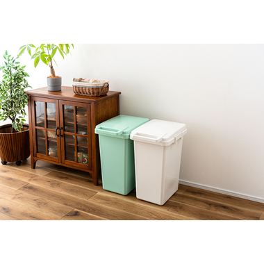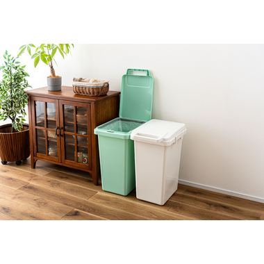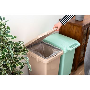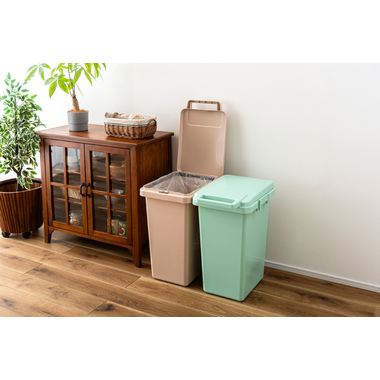 ハンドル付きのフタは片手でもスムーズな開閉が可能で、日常の動作を快適にサポートします。内部には袋止めが付いているため、ゴミ袋が外にはみ出しにくく、綺麗にセットすることができます。側面のジョイントで連結でき分別用としても使いやすい設計になっています。
