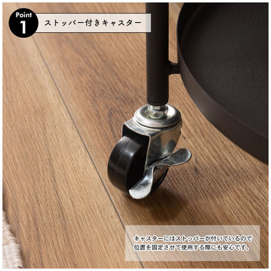 ●4個のキャスターの内、2個がストッパー付きなのでしっかりと固定することも可能。