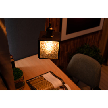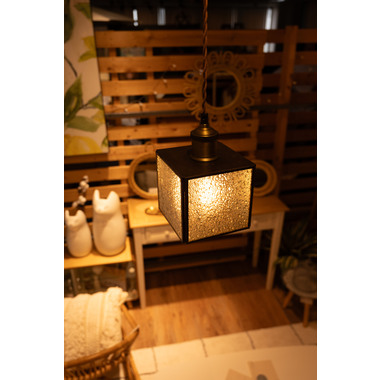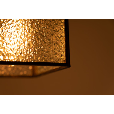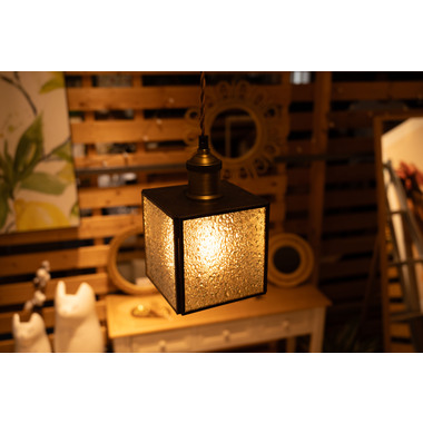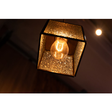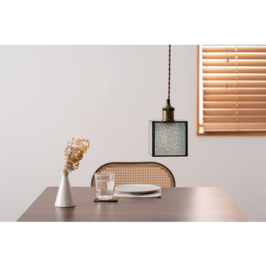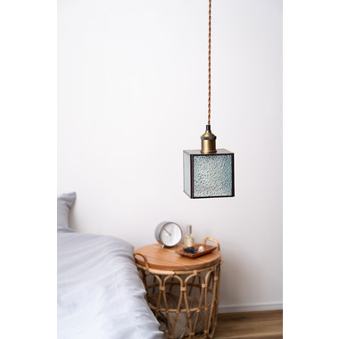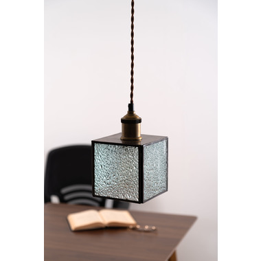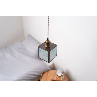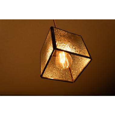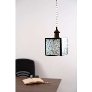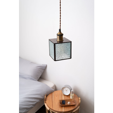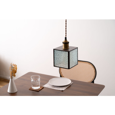 レトロ感漂うペンダントライト。ステンドグラスのシェードは立体的な模様が特徴的。どこか懐かしいノスタルジックな雰囲気を感じさせます。一灯はもちろん。広範囲には多灯付けがおすすめです。●形も特徴的なステンドグラス。シンプルだけど可愛らしいステンドグラスは消灯時にも立体的なデザインがインテリアとして演出してくれます。●点灯時の表情の変化。シェードの内側は光を反射して美しいデザインを楽しめます。消灯時とはまた違った表情をお楽しみください。●ご家庭のシーリングプラグに付けられます●コードの長さを調整できます