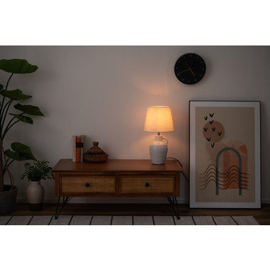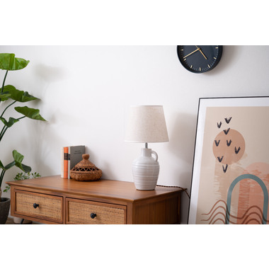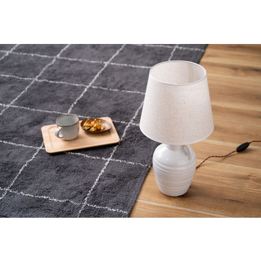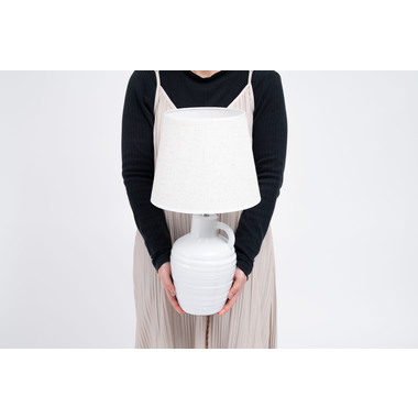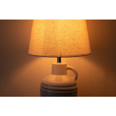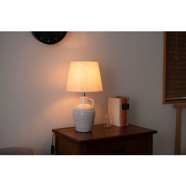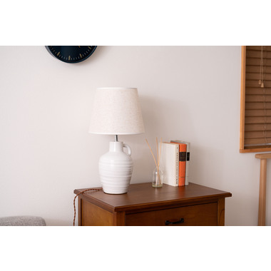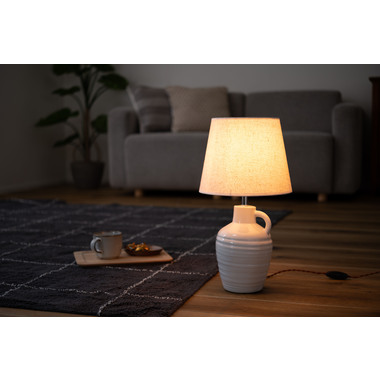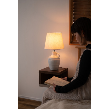 ●ありそうで無かった「陶器+ファブリック」の組合わせがお洒落なテーブルライト。●デスク上ではもちろん、ソファサイド・ベッドサイド等いろいろな場所で活躍。●シェードは角度を調整する事が出来るので、間接照明としてだけでなく、補助灯としても使えます。●読書タイムの空間を落ち着かせてくれるだけでなく眼にも優しいので、おやすみ前のリラックスタイムにもぴったり。●リラックスタイムが終わったら、手元のスイッチですぐに消灯できます。●テーブルライトは夜間だけでなく、日中のインテリアにも最適。ちょっと物足りなかった空間も、置くだけでグレードアップ。●テーブルライトをお部屋に取り入れて日々の生活をワンラックUP。