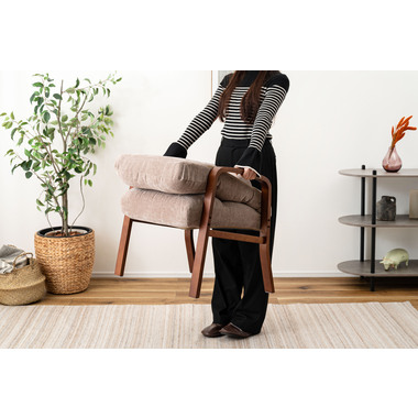 ●立ち上がりやすい肘掛の形状や持ち運びやすさなど、使う人に寄り添った設計の高座椅子。