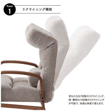 ●リクライニング機能で、自分にぴったりのチェアに調整が可能な高座椅子。