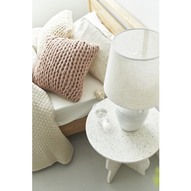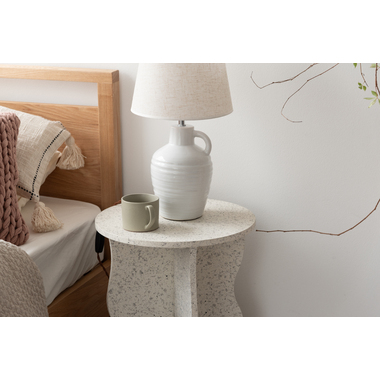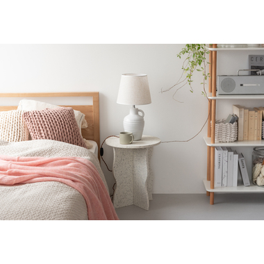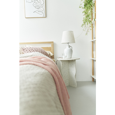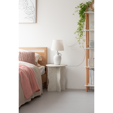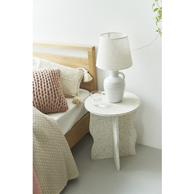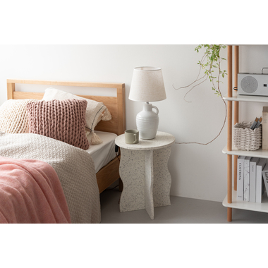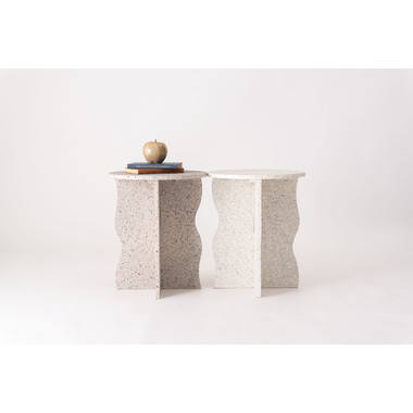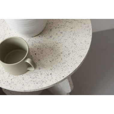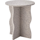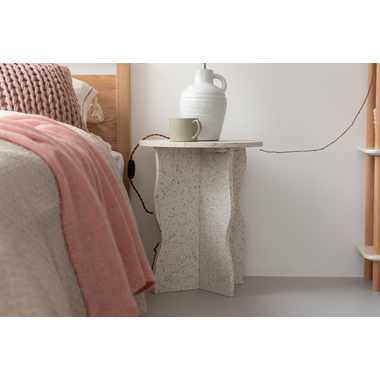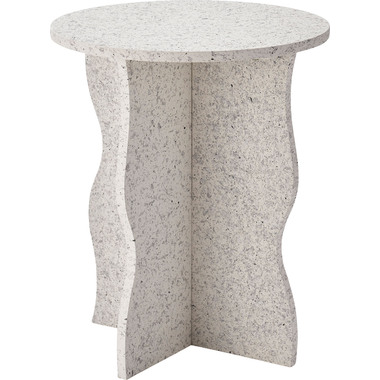 ●テラゾー柄と呼ばれる石の様な模様を施したトレンド感のあるシリーズ。●表面は凹凸のある仕様。●波打つようなフォルムが特徴的な4枚の土台で構成された、置くだけでオブジェの様な雰囲気の出るサイドテーブル。●裏面フェルトシール付き。