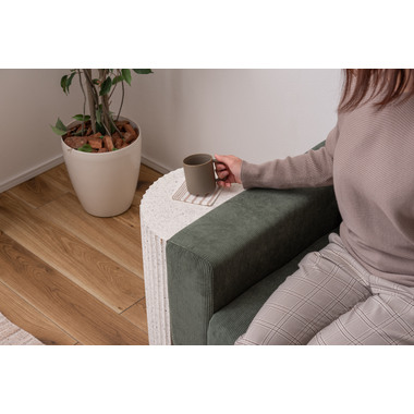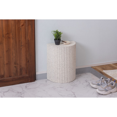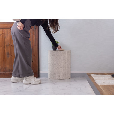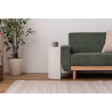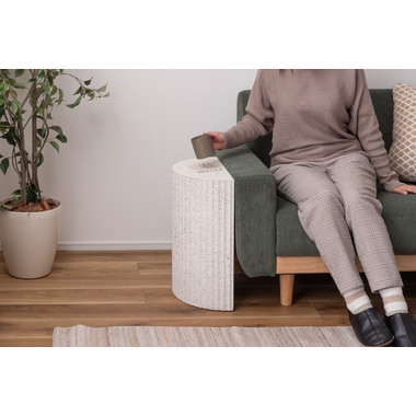 ●テラゾー柄と呼ばれる石の様な模様を施したトレンド感のあるシリーズ。●表面は凹凸のある仕様。●壁付けでも、ソファやベッドなどの家具の横付けでも。●直線の面を付けて使えるサイドテーブル。●裏面フェルトシール付き。