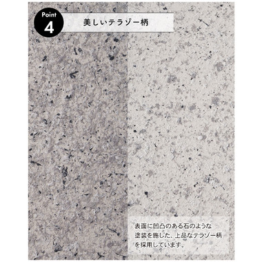 ●表面に凹凸のある石のような塗装を施した、上品で美しいテラゾー柄を採用。