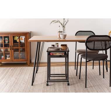 落ち着いた木目調と、モダンな印象を与えるスチールフレームの組み合わせが、様々なお部屋にすんなりと馴染みます。