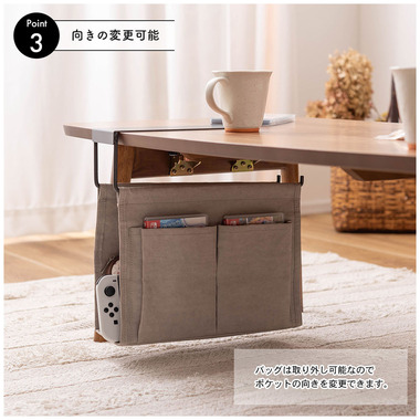 ●バッグは取り外しができるので、ポケットの向きも変更可能。