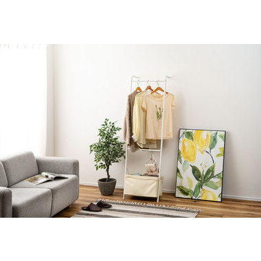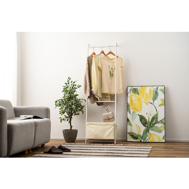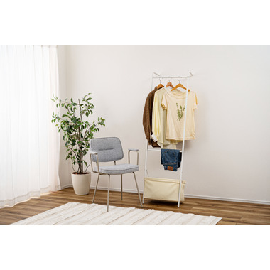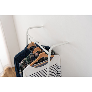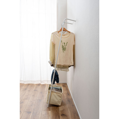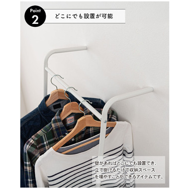 ●壁に立て掛け様々なシーンで使うことができるハンガー。