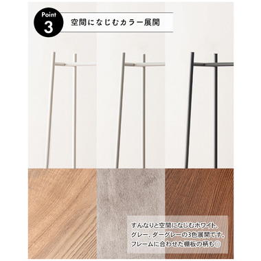 ●衣類を収納するだけでなく、小物を魅せるディスプレイ台としても使える為、多様なシーンで活躍。