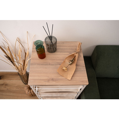 ●引き出しの底面には丈夫で取り出し可能なMDF板付き。キャンバス地でも形が崩れにくい仕様。
