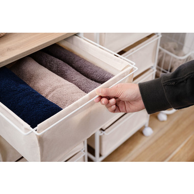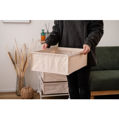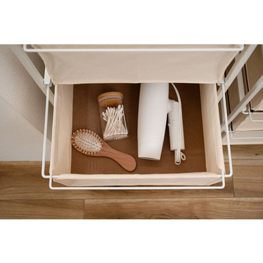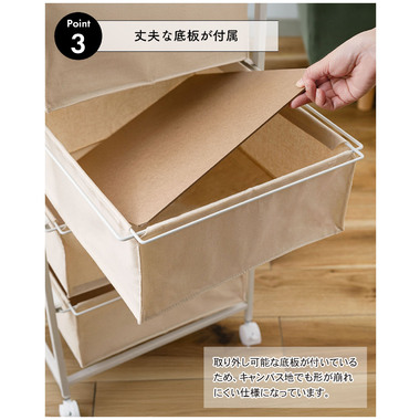 ●引き出しの底面には丈夫で取り出し可能なMDF板付き。キャンバス地でも形が崩れにくい仕様。