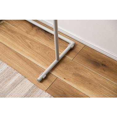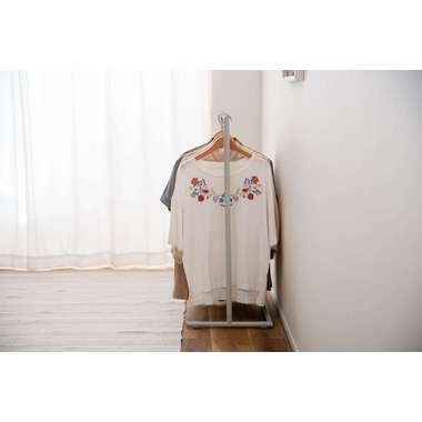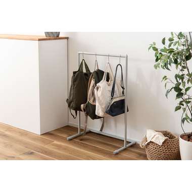 置く場所や用途に寄り添い、さまざまなシーンで活躍するハンガー。すっきりとしたフレームとマットなスチールの質感が空間になじみ、静かな雰囲気を演出します。洋服を掛けてコーディネートを楽しむだけでなく、玄関やリビングでは掛 けるアイテムによってディスプレイラックのようにも使えるのが魅力です。省スペース設計のため、壁際やベッドサイドなどの限られたスペースにもすっきりと収まり、空間を落ち着いた印象にまとめてくれます。