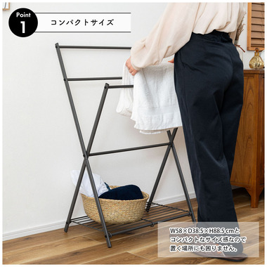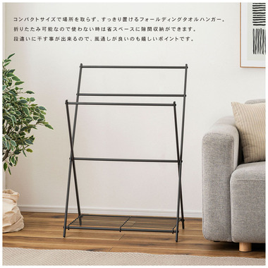 ●コンパクトサイズで場所を取らず、すっきり置けるフォールディングハンガー。