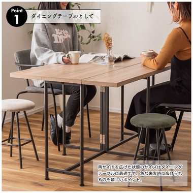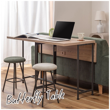 ●シーンに合わせて形を変えられるバタフライテーブル●天板を畳んだり広げたりする事で、生活の様々なシーンに合わせて多様な使い方が出来るバタフライテーブルです。天板下の脚を動かすだけで、簡単に伸縮させる事が出来ます。