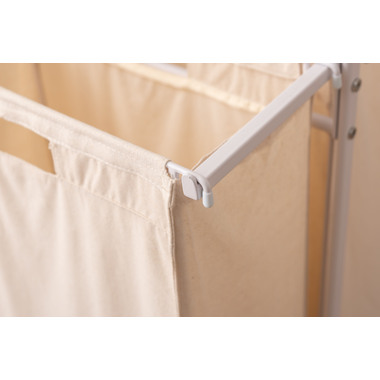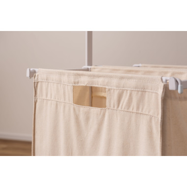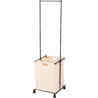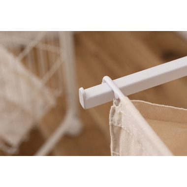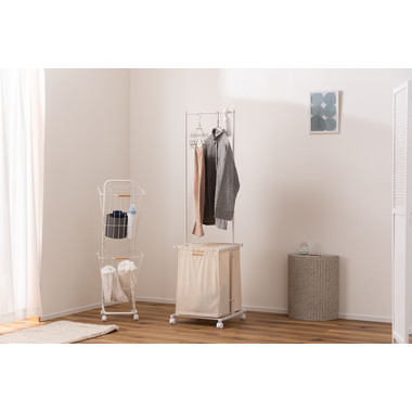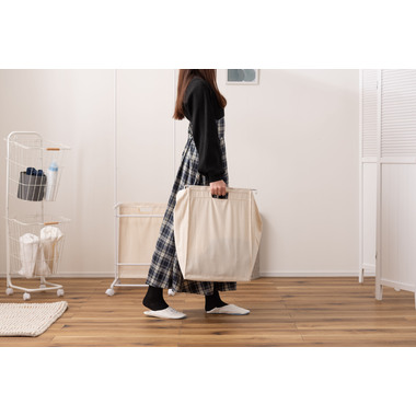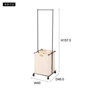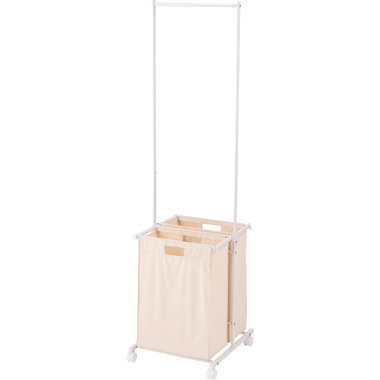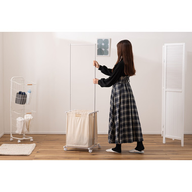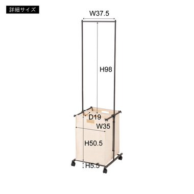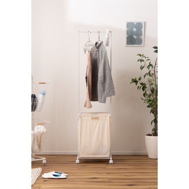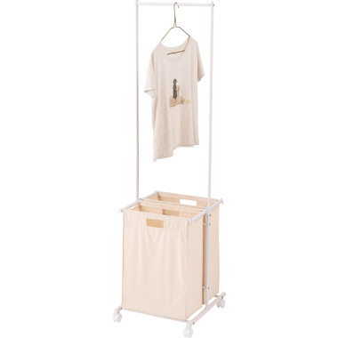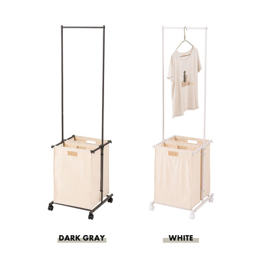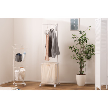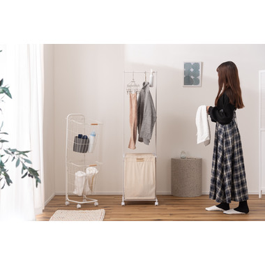 ●掛ける・収納するが同時にかなうシンプルなランドリーハンガー。●バスケットは取り出すことができ持ち運びも簡単。●キャスター付きなので移動も簡単。●バスケットは下段に2個。それぞれ独立して取り外し可能。●バスケットには取っ手が付いているので、持ち運び時にも便利。●バスケットを引っ掛けるバーにはストッパーが付いているので、ズレ落ちる心配なし。●ハンガー部分はシンプルでスタイリッシュなデザイン。