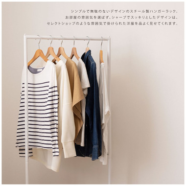 お部屋の雰囲気を選ばず、シャープでスッキリとしたデザインは、掛けられた洋服を品よく見せてくれます。