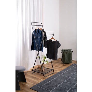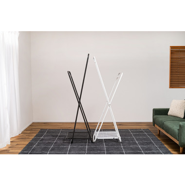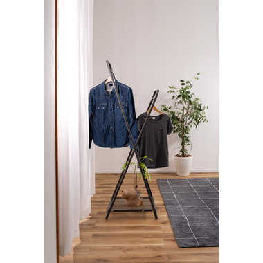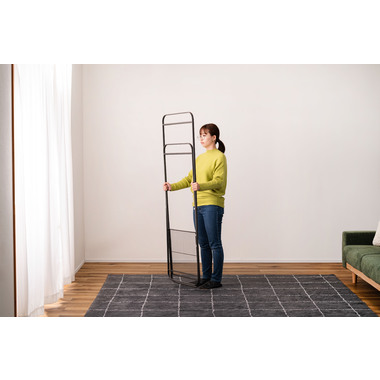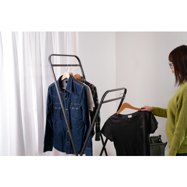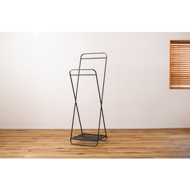 省スペースデザインで場所を取らず、スッキリ置けるフォールディングハンガー。折りたたみ可能なので使わない時は隙間収納しておけるのも嬉しいポイントです。ハンガーの傾斜を2段階で変える事が出来るので、高さ・奥行きの調整が可能です。●ハンガーの傾斜を2段階で調整出来ます●高さ・奥行きを2パターンで使用可能●バッグやボックスを置ける棚板付き●高さ違いで2段に掛けられます●折りたたみ可能で持ち運び楽々●シンプルデザインのスチール製