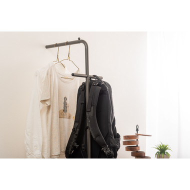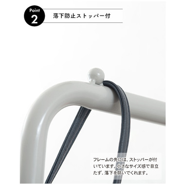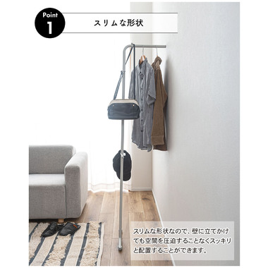 ●お部屋の中や玄関などの好きな所に立てかけるだけなので、場所を取らず洋服やコート、カバンなどを簡単に収納することが可能。