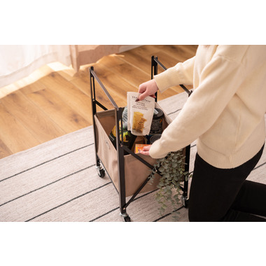 ●折りたたみができて、コンパクトに持ち運びができるテーブルワゴン。●キャスター付きなので手軽に移動ができ、ストッパーも付いているのでしっかりと固定できます。●インテリアはもちろん折り畳んで持ち運びができるので、アウトドア・キャンプ・レジャーシーンでも活躍。●天板(フタ)には取っ手が付いているので、取り外してトレーとして使用できます。●天板と収納部分の底板にはMDF板を使用しているので、しっかりと安定感のある収納が可能です。●コンパクトに折り畳むことができるので、使わない時はスッキリと隙間収納が可能。●組立動画はこちら→ https://azumaya-kk.com/movie/douga/mip-71.html