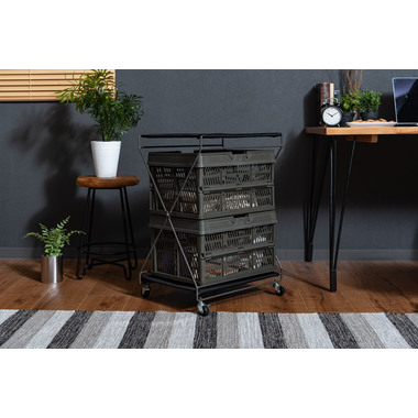 スタッチボックス(LFS-31/32)を収納できるフォールディングワゴン。スタッチボックスと合わせて大容量収納可能。使用しないときはたたんで収納することもできます。