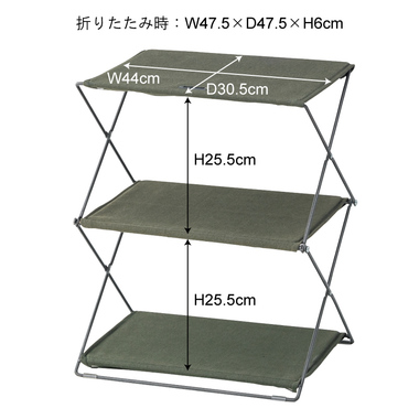 スチールとファブリックを組み合わせたフォールディングシェルフです。