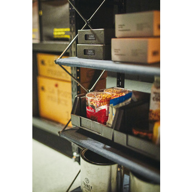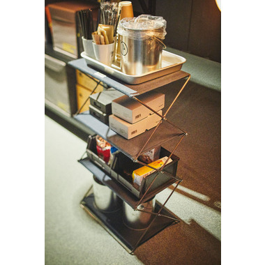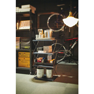 スチールとファブリックを組み合わせたフォールディングシェルフです。