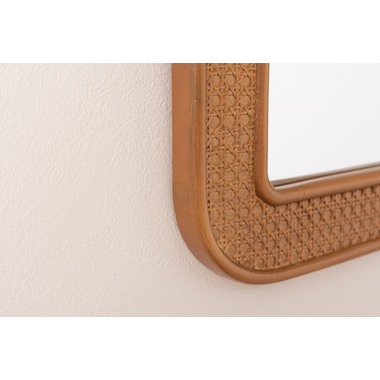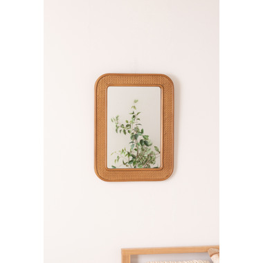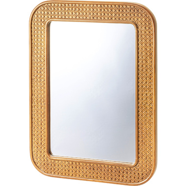 ●カゴメ編みのラタンで縁取られたミラー。