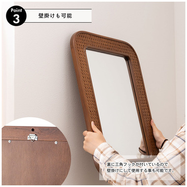 ●フレームは、天然ラタンと天然木で縁取り。自然素材のぬくもりを感じるデザイン。
